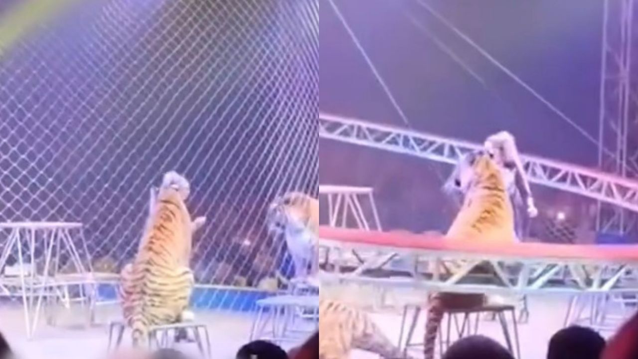 Video del tigre en el circo se difunde en redes sociales y documenta el momento del salto