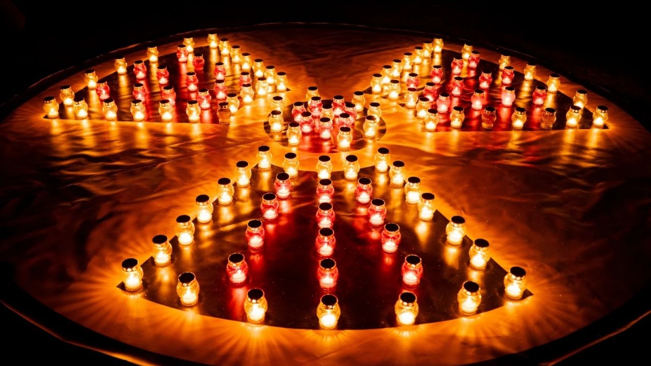 SLAVUTYCH, Ucrania (AP).- La gente acudió en masa a la plaza central de Slavutych en la madrugada del domingo, colocando velas sobre un gran símbolo de peligro de radiación extendido en el suelo, al comenzar la conmemoración de medianoche por los fallecidos en el desastre de Chernóbil hace 40 años y por los miles que arriesgaron su vida a una exposición mortal a la radiación para contener sus consecuencias.