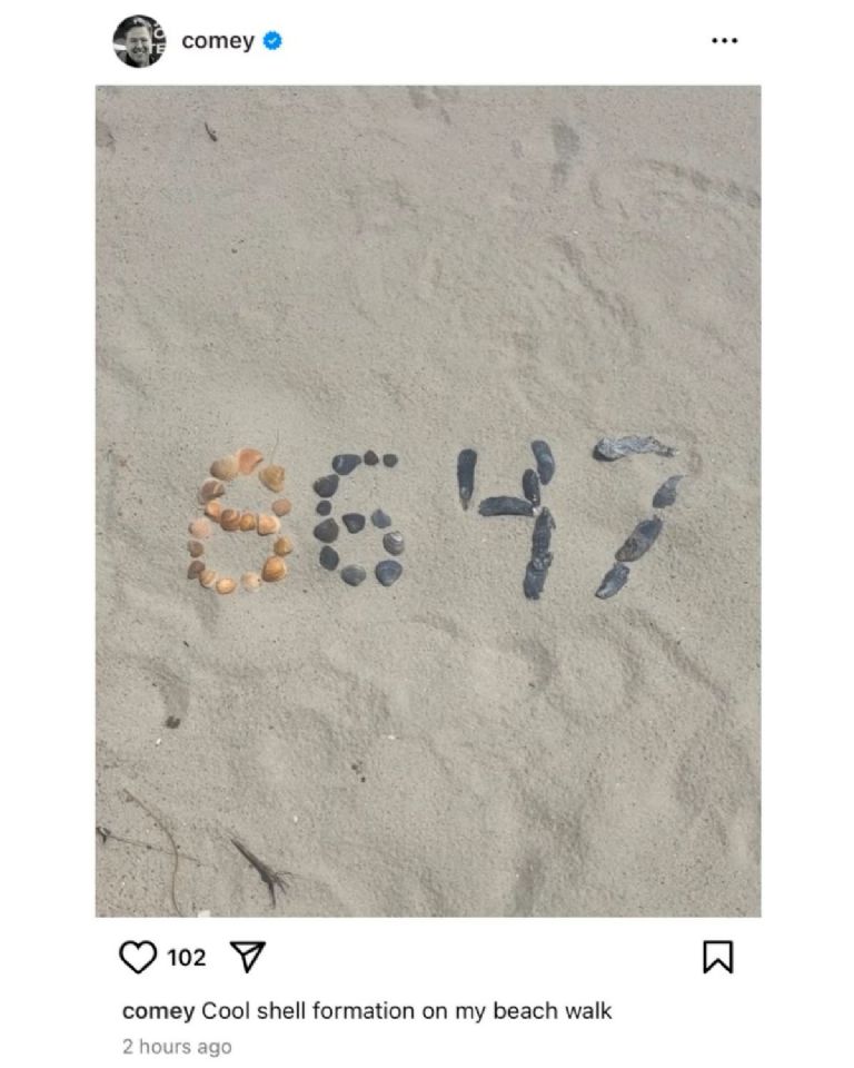 El Servicio Secreto entrevistó a Comey en mayo después de que funcionarios del gobierno sostuvieran que estaba promoviendo el asesinato de Trump, el 47º presidente. Comey borró la publicación poco después de hacerla y escribió: "No me di cuenta de que algunas personas asocian esos números con la violencia" y "Me opongo a la violencia de cualquier tipo, así que eliminé la publicación".