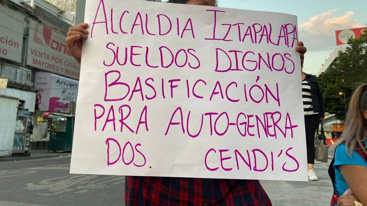 Afirman que muchas docentes no tienen plaza definitiva y ganan mil 800 pesos quincenales. Es la tercera protesta que realizan en los últimos cuatro meses.CIUDAD DE MÉXICO (apro).- Personal docente de los Centros de Desarrollo Infantil (Cendis), principalmente de la alcaldía Iztapalapa, bloquearon ambos carriles de la avenida Fray Servando Teresa de Mier, al cruce con Simón Bolívar, en la colonia Centro, de la alcaldía Cuauhtémoc, para exigir mejores condiciones laborales y un salario digno.