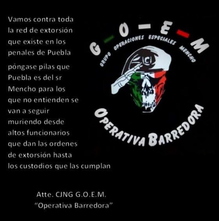 Con el empleo de redes sociales para exhibir sus crímenes y amenazar a autoridades, desde 2023 la organización criminal “Operativa Barredora” ha aterrorizado Puebla con asesinatos, decapitaciones y uso de explosivos extendiendo su violencia a Tlaxcala.PUEBLA, Pue (Proceso).– El 20 de febrero de 2023, en un video que se difundió en redes sociales, la “Operativa Barredora del Cártel Jalisco Nueva Generación” (CJNG) dio a conocer su irrupción en el escenario criminal de Puebla.