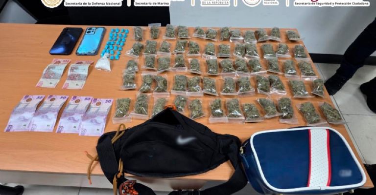 Al realizarles una inspección, les hallaron 92 dosis de mariguana, 44 dosis de cristal, 18 dosis de piedra, dos teléfonos celulares y dinero en efectivo.