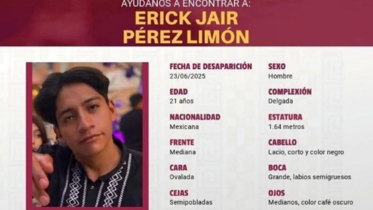 Erick Jair desapareció el 23 de junio en Oaxaca; la ONU activó una Acción Urgente y pidió resultados antes del 10 de octubre.CIUDAD DE MÉXICO (apro).— La desaparición de Erick Jair Pérez Limón, un joven originario del estado de Oaxaca, ha trascendido los ámbitos locales y provocado el pronunciamiento de organismos internacionales. Su caso es examinado por el Comité contra la Desaparición Forzada de la ONU mediante la Acción Urgente 2134/2025, que exige acciones claras y plazos específicos al Estado mexicano para ubicarlo y sancionar a los presuntos responsables.