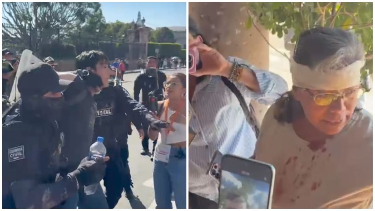 Sin embargo, un grupo de jóvenes llegó y lanzó consignas contra los policías que permanecían en resguardo, lo que derivó en un intercambio de agresiones verbales. Al intentar replegar a los inconformes, los uniformados también arremetieron contra representantes de medios de comunicación que cubrían los hechos.