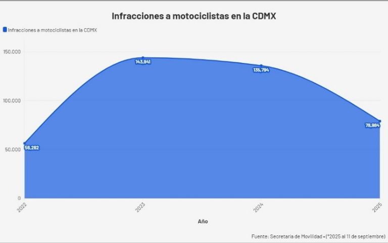 Proceso revisó informes de la Secretaría de Movilidad capitalina obtenidos vía transparencia que dan cuenta que, del año 2022 al 11 de septiembre de 2025, hubo 414 mil 981 infracciones impuestas a motociclistas por faltas al reglamento de tránsito vigente.