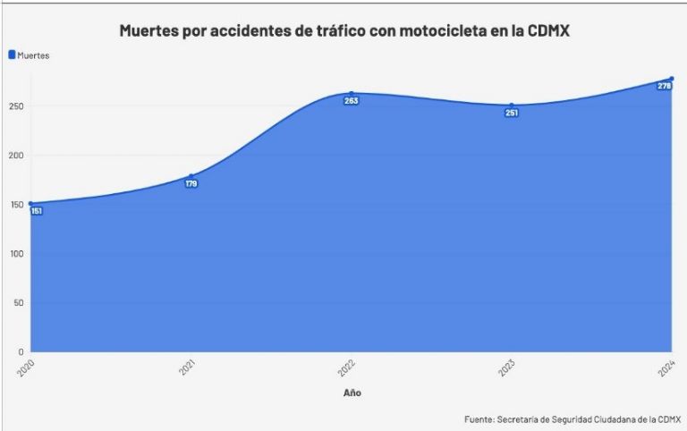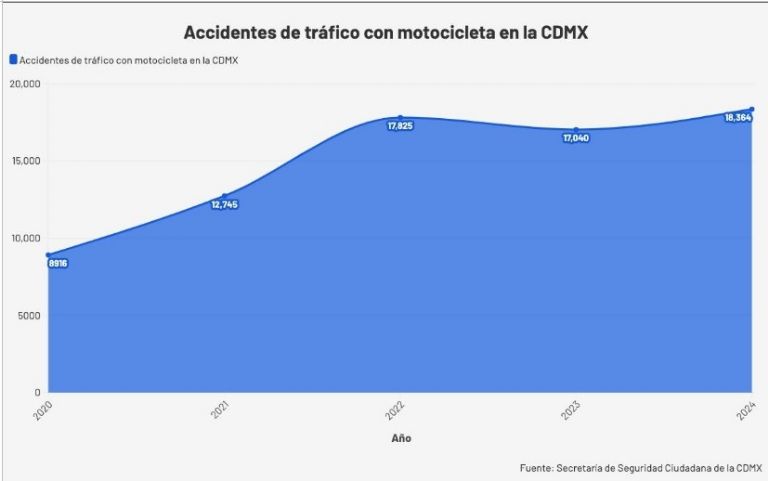 Datos obtenidos por Proceso muestran que, del 2020 al 2024, los accidentes de tráfico en donde está involucrada una motocicleta subieron más del doble: es decir, de 8 mil 916 eventos a 18 mil 364.