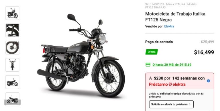 Con 230 pesos semanales, a pagar en 142 semanas, casi cualquier persona puede conseguir una motocicleta de gasolina en una popular tienda departamental que ofrece préstamos con pagos “chiquitos”. Al final del plazo se pagará más del doble por el vehículo.