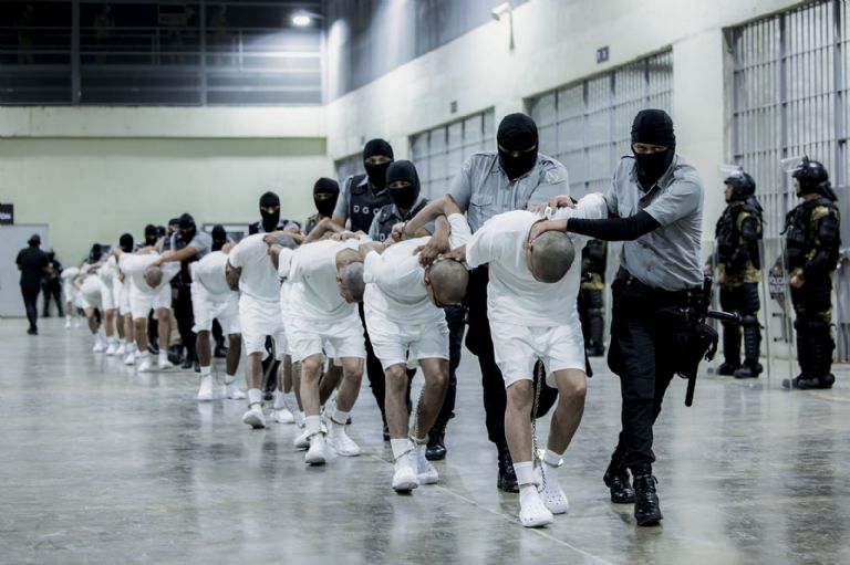 16 de marzo. Traslado de presuntos pandilleros venezolanos, deportados de EU, a un centro de confinamiento en El Salvador. Foto: Oficina de prensa de la presidencia de El Salvador vía AP.