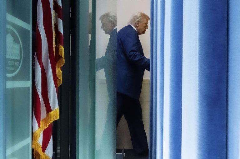11 de agosto. El presidente Donald Trump se retira tras hablar con la prensa en la Casa Blanca, en Washington. Foto: AP / Alex Brandon.