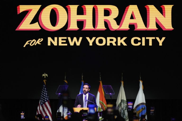 4 de noviembre. Zohran Mamdani habla después de ganar las elecciones a la alcaldía, en Nueva York. Es el primer alcalde musulmán de la ciudad. Foto: AP / Yuki Iwamura.