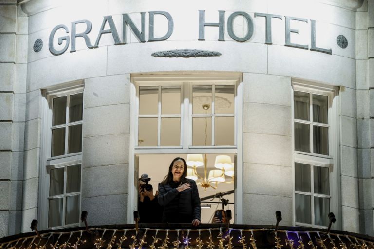 11 de diciembre. La Premio Nobel de la Paz, María Corina Machado, saluda a la multitud desde el Grand Hotel, en Oslo, Noruega. Foto: Jonas Been Henriksen/NTB Scanpix vía AP.