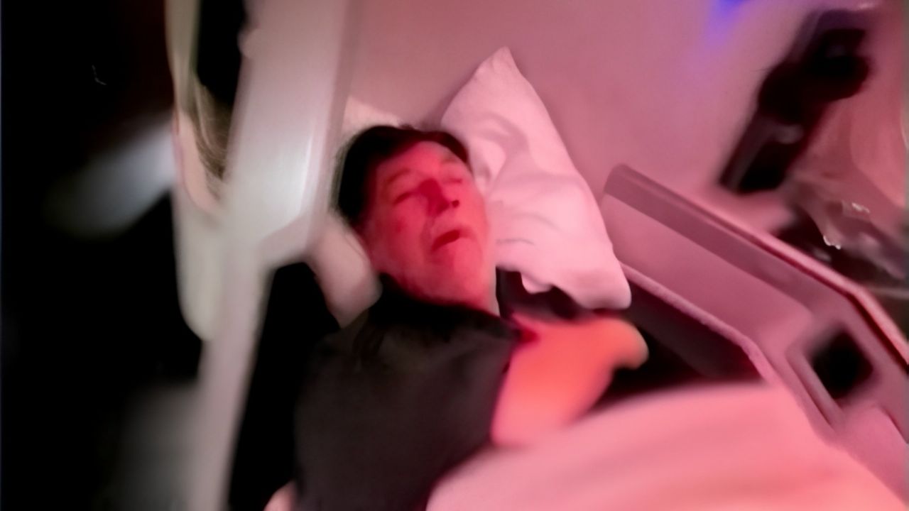 Posteriormente se difundió una imagen en la que el senador está durmiendo en su asiento. Según el periodista Gustavo Malcalpin, quien realizó la nota, el senador se encuentra en primera clase.