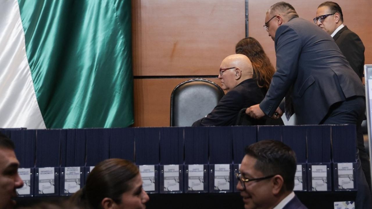 David Colmenares entregó el informe de la Cuenta Pública 2024 en la Cámara de Diputados. Tras los posicionamientos, fue a una sala contigua al Salón de Legisladores, donde los reporteros lo cuestionaron sobre su reelección.