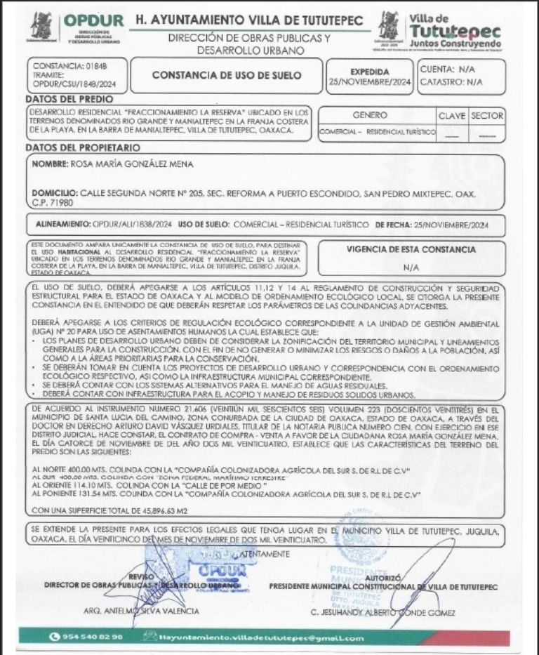 “Pareciera que este desarrollo inmobiliario cuenta con la protección gubernamental porque está anunciado en internet y está rompiendo todas las normas y no pasa nada. Además tiene permisos del municipio de Tututepec”.