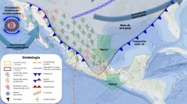 Mientras que, la masa de aire polar que impulsa al frente, en interacción con una vaguada en altura y con la corriente en chorro subtropical, ocasionarán evento de “Norte” muy fuerte con oleaje elevado en costas de Tamaulipas y Veracruz, extendiéndose durante la noche hacia el istmo y golfo de Tehuantepec (Oaxaca y Chiapas); además de un nuevo descenso de las temperaturas en el norte, noreste, oriente y centro del país.