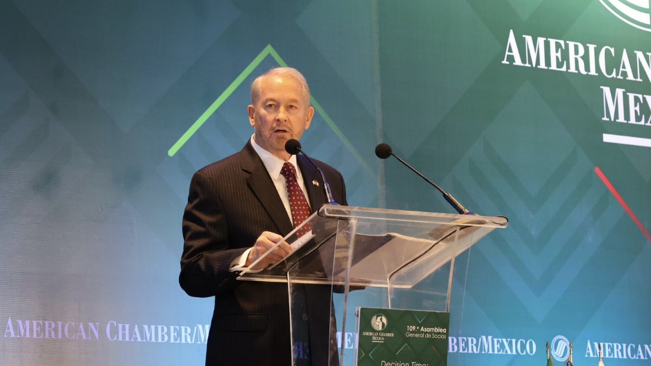 Durante la 109ª Asamblea Nacional de la American Chamber of Commerce of Mexico, el diplomático expuso que la relación entre ambos países se pondrá a prueba en dos aspectos simultáneos, la revisión del T-Mec y la organización del evento deportivo más grande del mundo, que por primera vez se celebrará de manera regional entre México, Estados Unidos y Canadá.