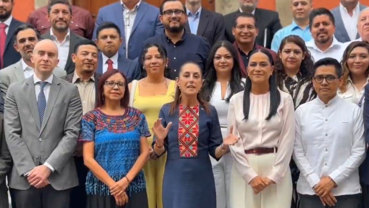 En el video la presidenta Sheinbaum aparece en uno de los patios de Palacio Nacional, frente a la biblioteca, con Montiel, con coordinadores territoriales, así como delegados de la Secretaría de Bienestar.
