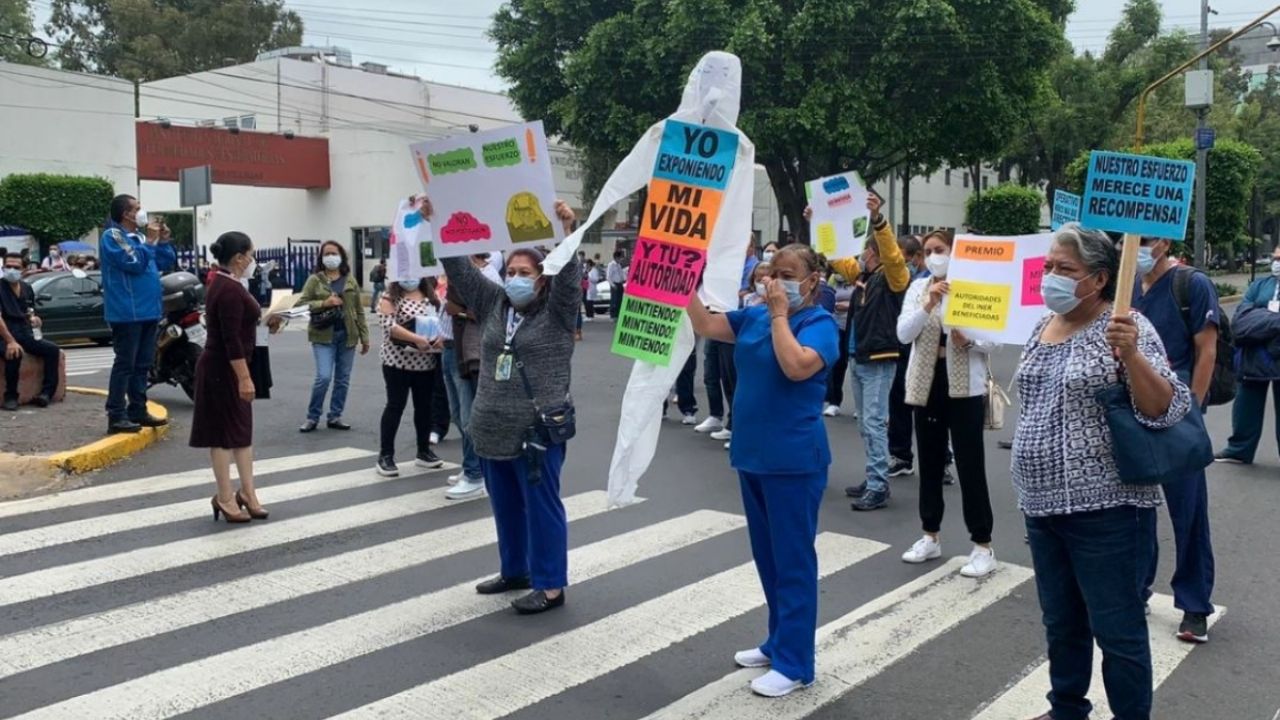 Trabajadores de base del INER bloquearon calles aledañas al hospital para exigir el pago de bonos prometidos por atender a pacientes con covid-19, y denunciaron que el reconocimiento se otorgó sólo a directivos.CIUDAD DE MÉXICO (apro).– Trabajadores de base del Instituto Nacional de Enfermedades Respiratorias (INER) se manifestaron en las calles aledañas al hospital para exigir el pago de bonos que les habían prometido por el alto riesgo a todo el personal que atiende a los enfermos de covid-19.