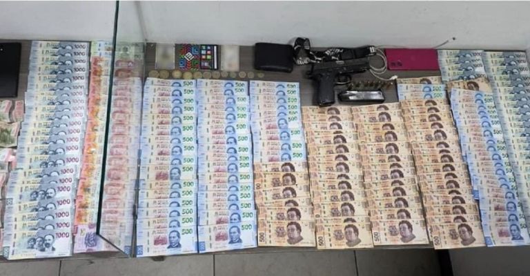 Los detenidos —uno de 24 años y dos de 22— portaban una pistola corta, un cargador con siete cartuchos útiles, dos teléfonos celulares y el dinero que fue reconocido por las víctimas.