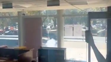 Este viernes 14 de noviembre, comenzó a circular en redes sociales un video en el que se muestra el momento exacto en el que el artefacto explosivo de fabricación casera comienza a expedir humo justo en frente del edificio mencionado, momentos después, se escucha y se ve una detonación que quiebra por completo una de las puertas de cristal.