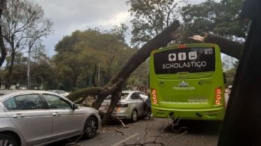 Imágenes difundidas en redes sociales muestran que el árbol cayó directamente sobre un camión de traslado de menores a escuelas de la empresa “Scholastico”, mientras que otros dos vehículos grises que circulaban en el carril contiguo recibieron el impacto del tronco que se separó durante la caída.