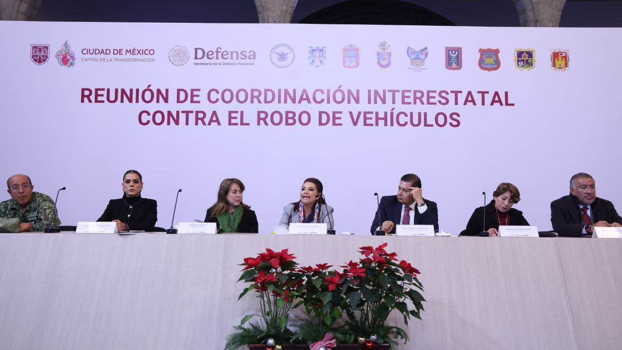 Lo anterior fue presentado por la mandataria capitalina en la Cuarta Reunión Metropolitana de Coordinación Interestatal contra el Robo de Vehículo, realizada en el Museo de la Ciudad de México, donde acudieron representantes de las entidades mencionadas, así como los siguientes gobernadores morenistas: Delfina Gómez Álvarez, del Estado de México; Margarita González Saravia, de Morelos; Evelyn Salgado Pineda, de Guerrero; y Alejandro Armenta Mier, gobernador de Puebla.