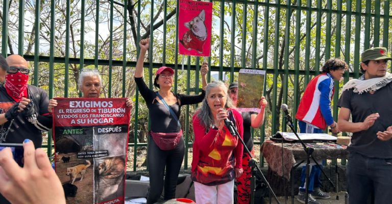 En la manifestación también participaron integrantes del Refugio Franciscano que demandaron al gobierno de Brugada que les de tiempo para acondicionar un espacio para que les regresen a los cientos de perros que desalojaron del albergue ubicado en Cuajimalpa meses atrás.
