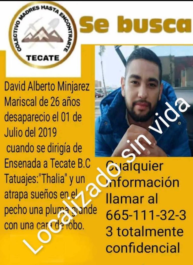 El cuerpo habría sido encontrado al día siguiente, pero el rezago y la falta de personal forense retrasaron la detección en estos años, según le explicaron las autoridadesBAJA CALIFORNIA (apro).- Tras seis años de búsqueda, la señora Mónica Gabriela Mariscal, presidenta del colectivo Madres Hasta Encontrarte Tecate, del municipio de Tecate, Baja California, logró localizar e identificar a su hijo David Alberto Minjarez Mariscal.