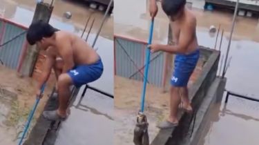 Uno de los videos que conmovió a las personas en internet fue el de un niño que salvó a un gato utilizando una escoba para ayudarlo a alcanzar una barda y ponerse a salvo de las lluvias.