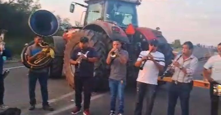 En el bloqueo de la Autopista Gdl-México, a la altura de La Barca los agricultores llevaron esta tarde música de banda para anunciar que continuarán su lucha.