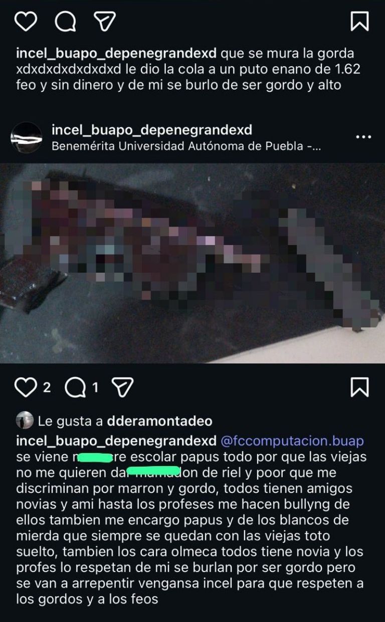 Señaló que, tras realizar una investigación conjunta con la Policía Cibernética de la Secretaría de Seguridad del Estado, identificó a quien estaba detrás de la cuenta “incel_buapo_depenegrandexd”, quien había emitido mensajes amenazantes en los últimos días.