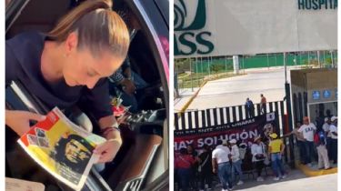 Los profesores se apostaron en los accesos al Hospital del IMSS donde colocaron lonas con la leyenda: “Si no hay solución, no rueda su balón”, y en ellas fue colocada una caricatura de la presidenta con un balón del Mundial de Futbol 2026.