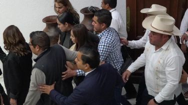 El hombre detenido se mezcló entre la gente que se congregó afuera del Congreso local, ubicado sobre la avenida principal de la ciudad de Morelia, para manifestar el apoyo a la esposa del exalcalde, e intentó ingresar, pero la policía lo detuvo y le quitó la capucha que portaba.