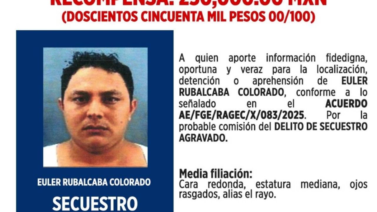 La FGET mantiene vigente la recompensa de 250 mil pesos para quien aporte información que lleve a su captura.