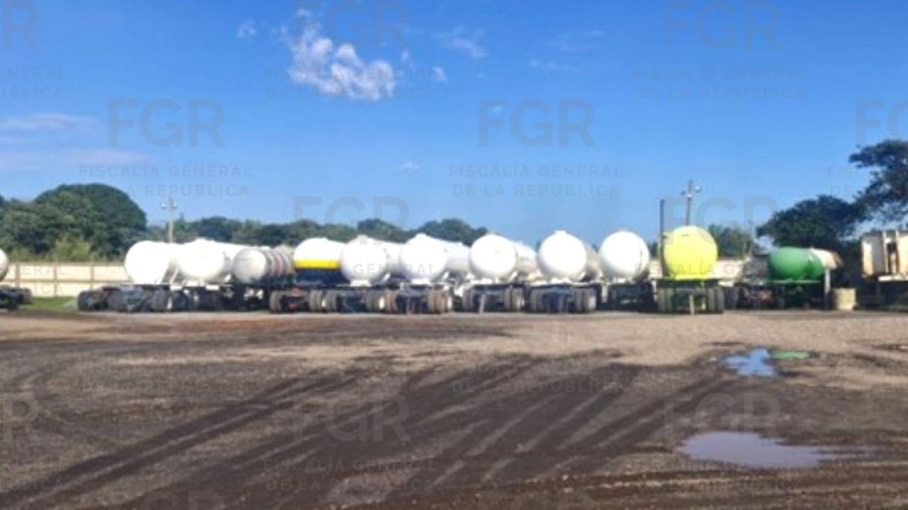 Se localizaron dos tanques fijos de almacenamiento, 41 semirremolques tipo tanque, 18 autotanques y siete tractocamiones en el segundo domicilio.