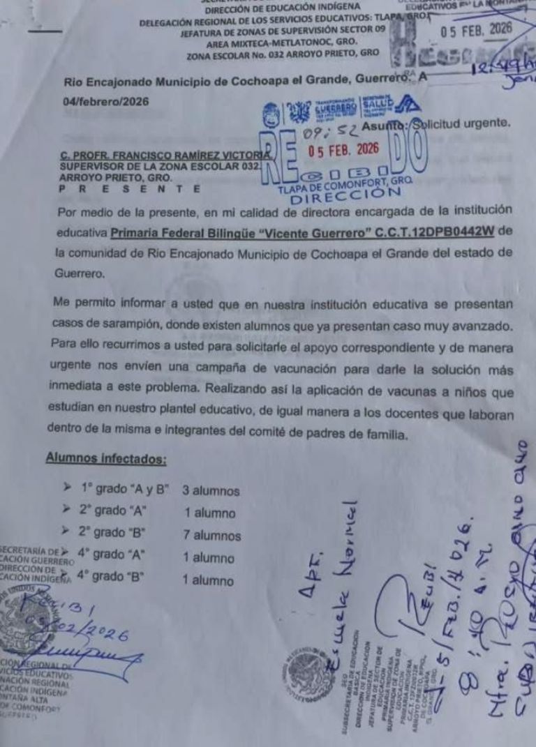 Maestra revela más de 20 casos de sarampión en Río Encajonado, Guerrero; muere un niño de dos años