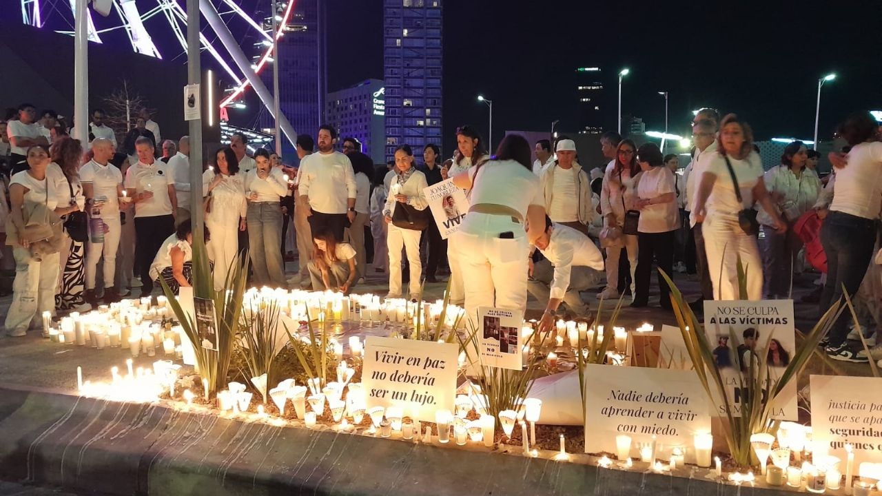 Mientras en esta zona comercial de Angelópolis, justo en frente de la Rueda la Estrella de Puebla, los negocios operan de manera cotidiana, unas 100 personas se vistieron de blanco y colocaron veladoras para reclamar justicia ante el asesinato de los tres jóvenes.