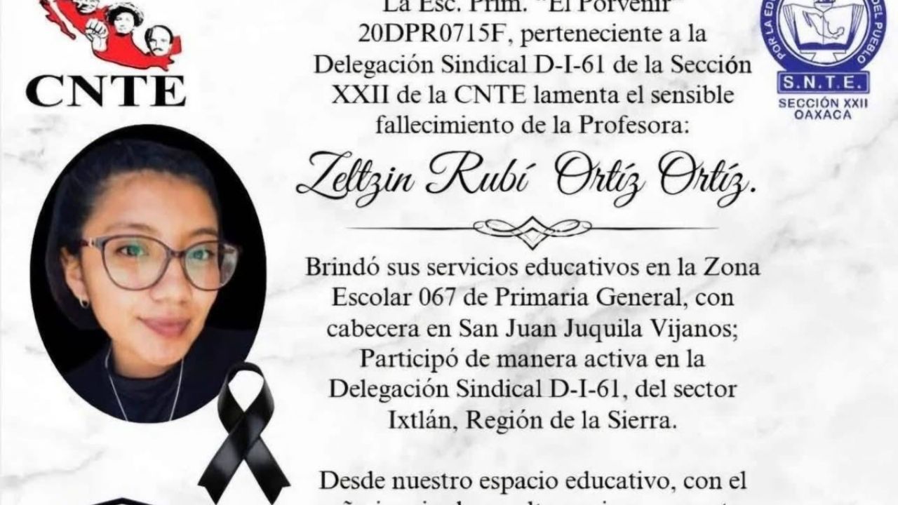 La profesora fue localizada en una vivienda de Santa María Lechichina; el presunto agresor se habría quitado la vida en el lugar.OAXACA, Oax. (apro).- La Fiscalía General de Oaxaca confirmó que inició una investigación bajo el protocolo de feminicidio tras el hallazgo sin vida de la maestra Zeltzin Rubí Ortiz en Santa María Lachichina, comunidad de la Sierra Norte.