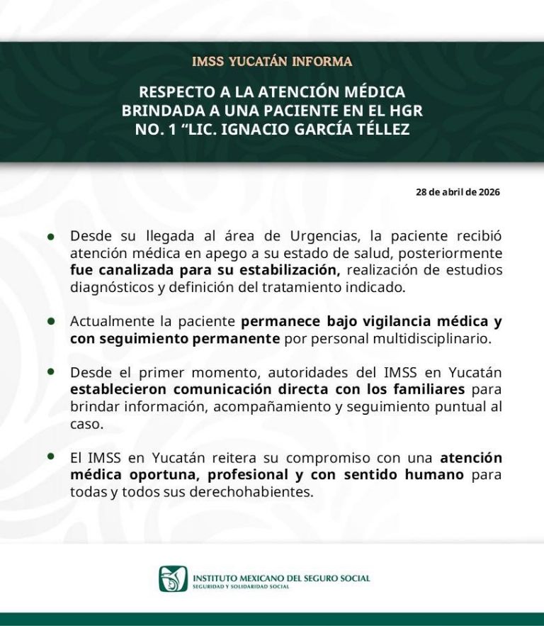 Una enfermera justificó la desatención de la urgencia. Le dijo a la madre que no había camillas para trasladar a su hija al área donde estaba el oxígeno que necesitaba.MÉRIDA, Yuc. (apro).-Tere Yah del municipio de Hocabá, Yucatán denunció en redes sociales cómo la demora de la atención en el área de urgencias del Hospital de la T1 del IMSS, puso en riesgo la vida de su hija. En una transmisión en vivo, exhibió que llegó convulsionando y con aparentes dificultades para respirar, y aun así fue ignorada por el personal médico.