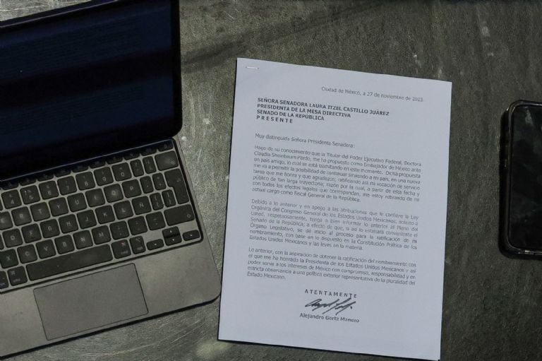 Luego de más de siete horas y en una sesión inusitada que prolongó un receso de más de cinco horas, se filtró la carta de Alejandro Gertz Manero, en donde informa que la presidenta Claudia Sheinbaum lo propuso para una embajada, por lo que dejará su actual puesto.