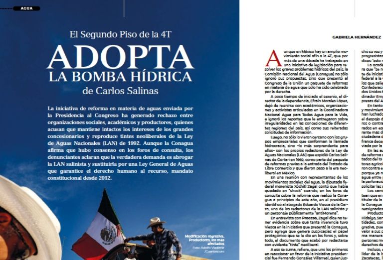 En otro tema, ante la próxima reforma en la Cámara de Diputados para expedir la Ley General de Aguas, el país ha sido testigo de las movilizaciones de agricultores que rechazan la propuesta impulsada por la Comisión Nacional del Agua (Conagua), debido al carácter neoliberal y “salinista” que le atribuyen no sólo los productores, sino también especialistas y exfuncionarios del organismo.