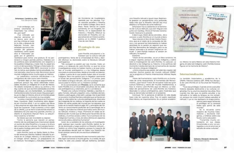 “El libro más completo de León-Portilla sin duda es La filosofía náhuatl...; y Visión de los vencidos... se ha traducido a veinte lenguas, en este momento se está acabando la traducción al griego. A él le daría muchísimo gusto porque admiraba a los griegos”.