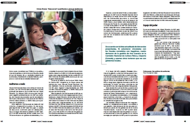 Acto seguido, Colmenares se deslindó del informe y suspendió al auditor. En las entregas siguientes, la ASF dejó de jugar un papel de escrutinio incómodo para el tabasqueño. Así, a lo largo del sexenio pasado, la ASF realizó 11 mil 815 revisiones, de las cuales ocho mil 715 se enfocaron en gobiernos estatales y municipales; durante el mismo lapso el ente fiscalizador determinó 459 mil millones de pesos en presuntas irregularidades, de las cuales 301 mil 630 millones de pesos (65%) tenía que ver con el gasto federalizado.
